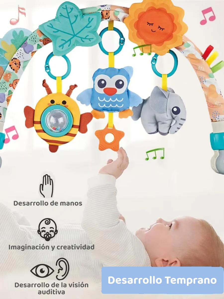 Incluye: arco colgante + juguetes sensoriales desmontables + caja musical + mordedor