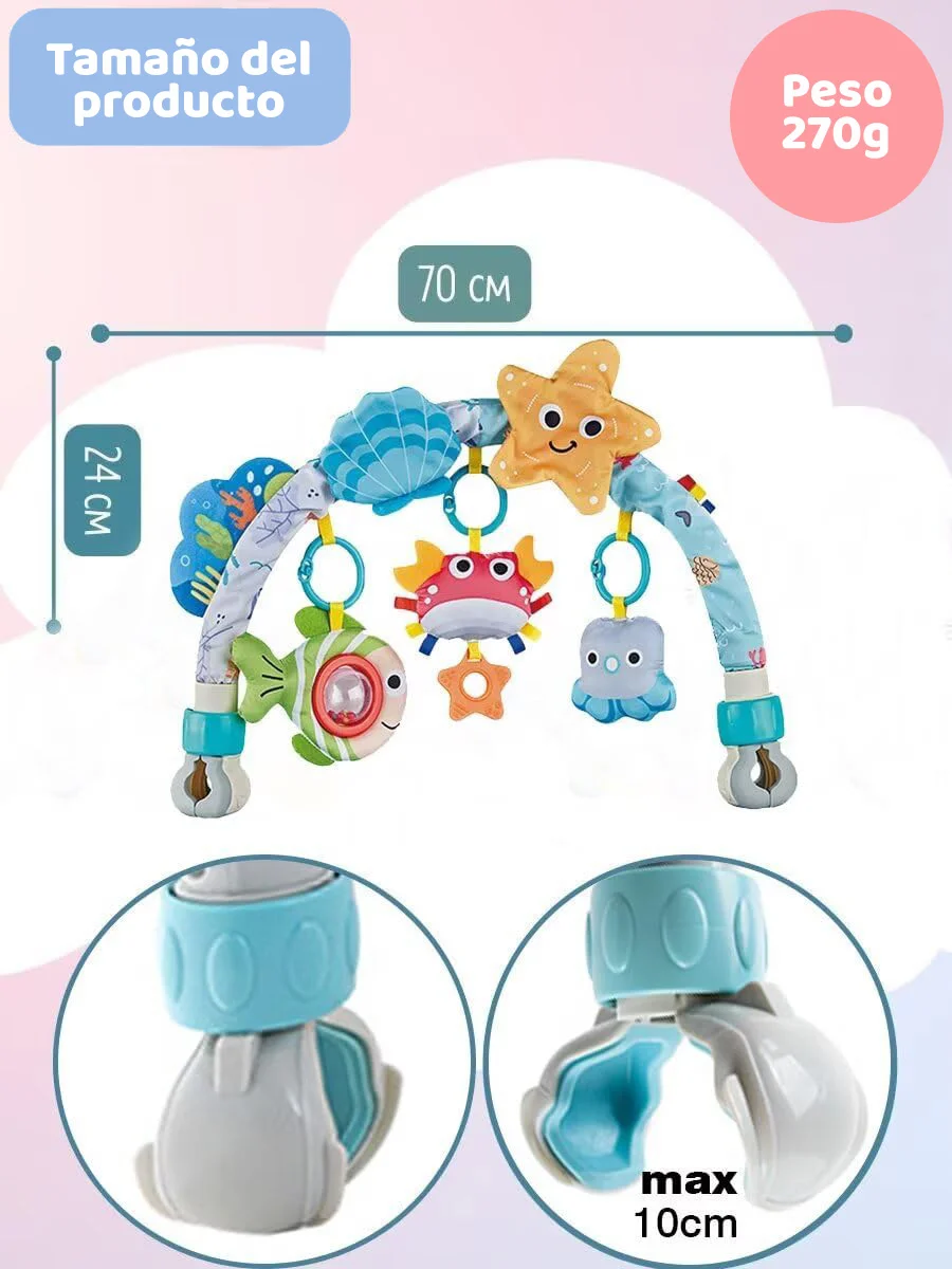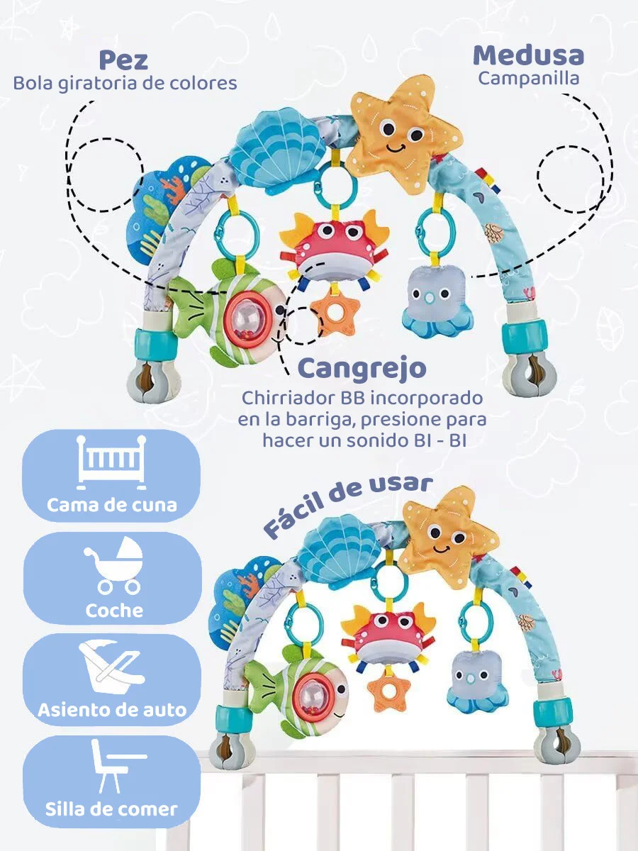 Incluye: arco colgante + juguetes sensoriales desmontables + caja musical + mordedor