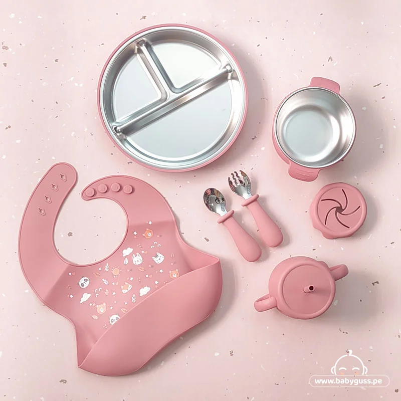 Haz de cada comida un momento divertido y seguro con este set completo de alimentación para bebés a partir de 6 meses. Diseñado en materiales de acero inoxidable SUS 304 y silicona de grado alimenticio, combina practicidad, durabilidad y ternura en un solo kit.