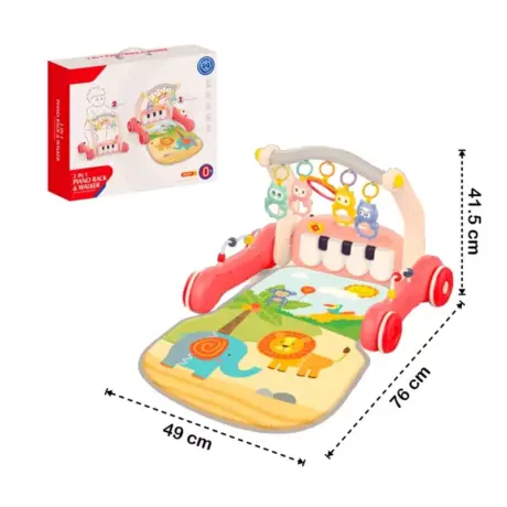 Elementos incluidos: Gimnasio con piano 2 en 1 modelo safari, Andador con Piano Musical, Colchoneta Educativa y Juguetes Colgantes