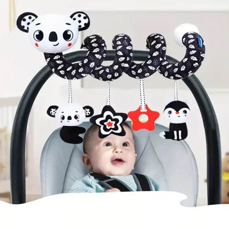 Convierte cada paseo o momento de descanso en una experiencia llena de descubrimiento. Este espiral colgante se adapta fácilmente a coches, cunas o portabebés, y ofrece colores vibrantes, texturas suaves y sonidos encantadores que estimulan los sentidos de tu bebé desde los primeros meses.