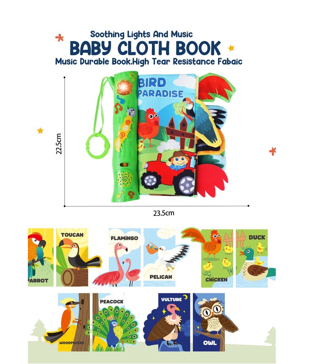 Libros Musicales de Tela: ¡Diversión Sensorial para los Peques! Son perfectos para bebés a partir de los 6 meses. Incluye: músicas infantiles, páginas de telas texturizadas con sonidos chirriantes. Estos juguetes combinan música, texturas suaves y colores brillantes para estimular la curiosidad y el desarrollo sensorial.
