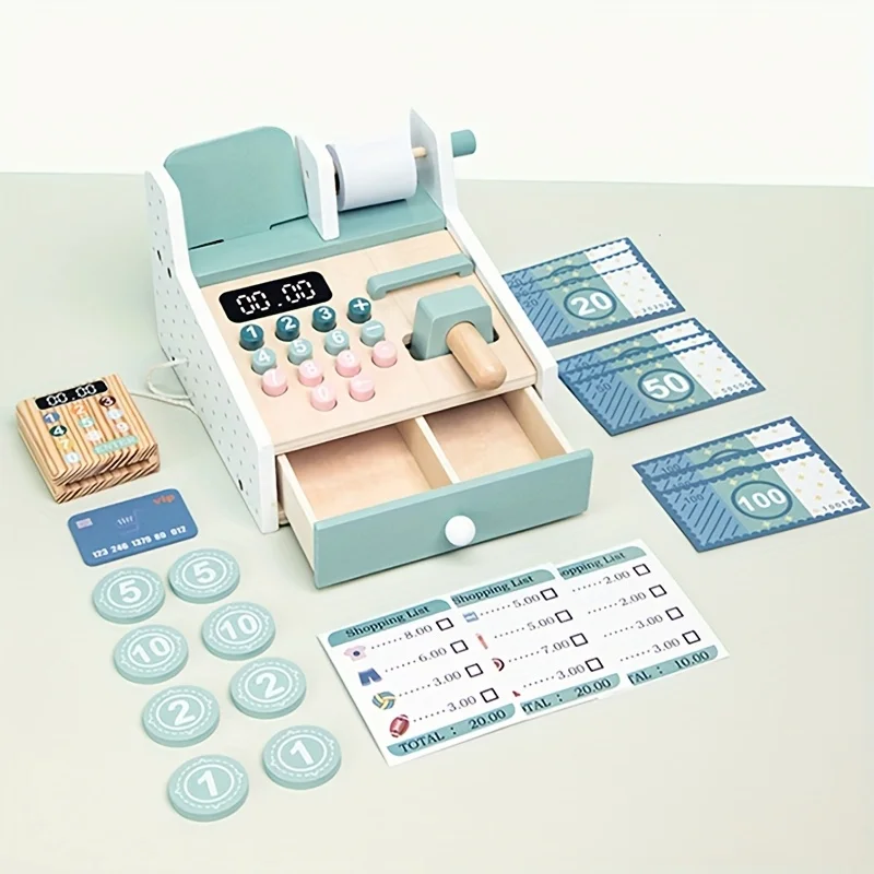 Convierte el juego en aprendizaje con este encantador Mini caja registradora de madera – Kabi, ideal para que los peques aprendan sobre el valor del dinero, la comunicación y las matemáticas mientras se divierten 💰🧾