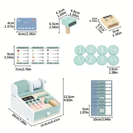 Elementos incluidos: 1 Mini Caja Registradora de Madera – Kabi