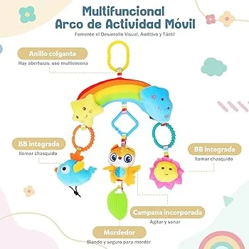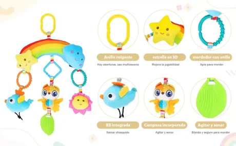 🧠 Estimulación sensorial completa: colores vibrantes, texturas suaves y sonidos delicados que desarrollan la vista, el oído y el tacto.