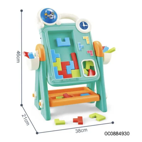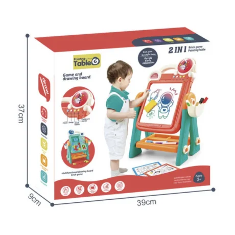 Elementos incluidos: 1 Tablero Multifuncional 2 en 1, Borrador, 8 Marcadores, Plantillas para pintar, Juego de encaje de fichas