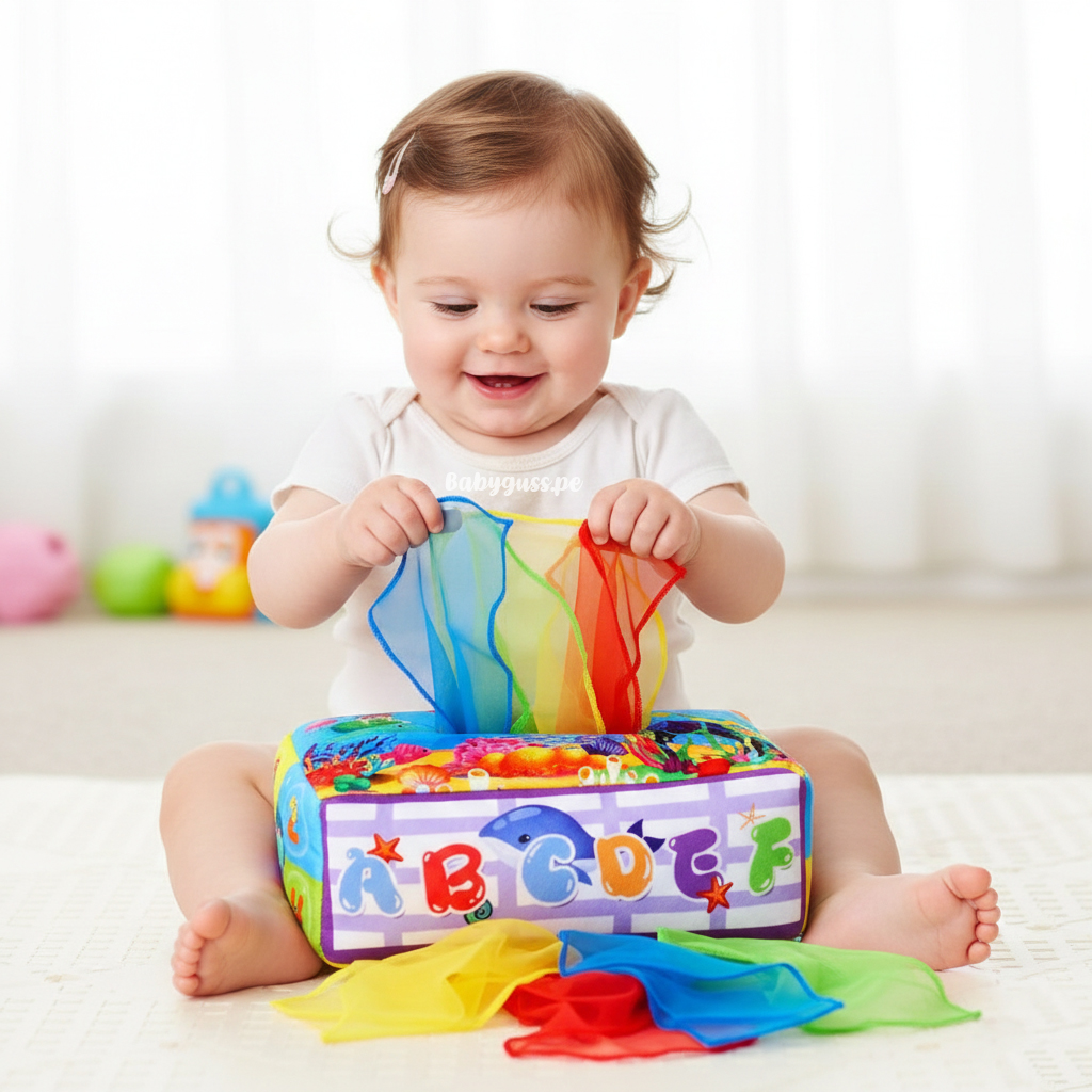 🧸 Caja de Pañuelos Sensorial Montessori para Bebés