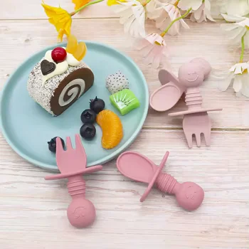 Acompaña las primeras comidas de tu peque con este tierno y seguro set de cubiertos de silicona 💛