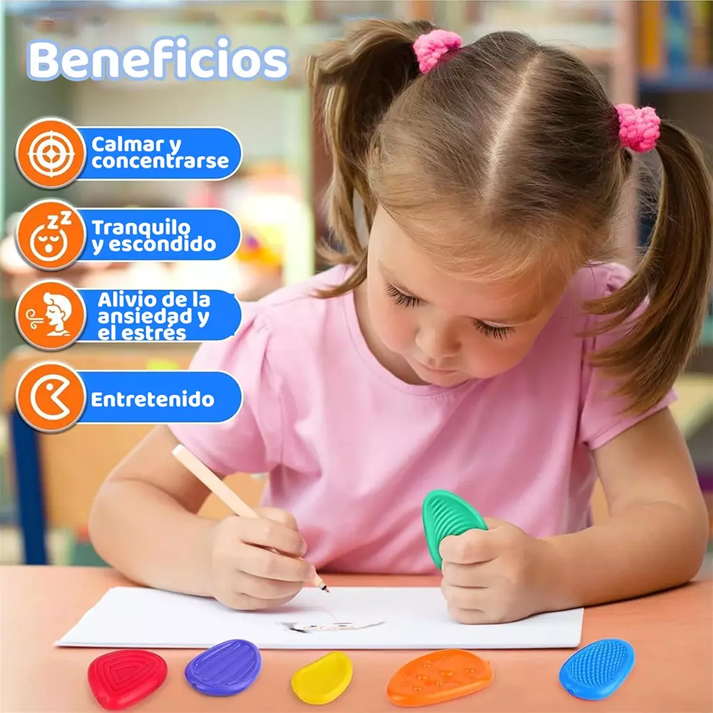 Descubre la calma y la concentración con nuestras piedras sensoriales antiestrés, diseñadas para brindar una experiencia táctil relajante y placentera. Con colores vibrantes y texturas únicas, este set es ideal para niños, adolescentes y adultos, incluyendo personas con autismo, TDAH o ansiedad.