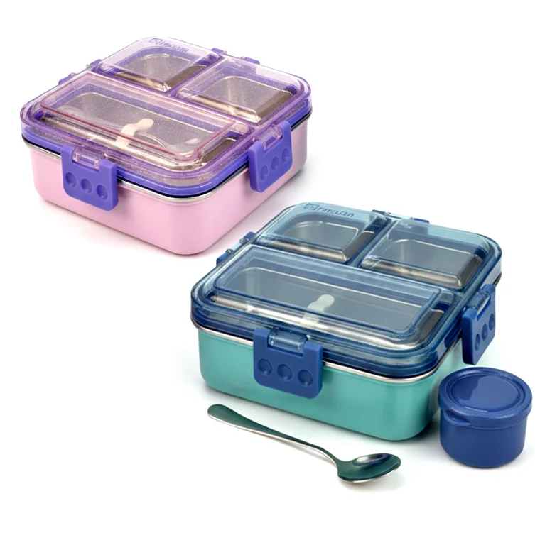 Elementos incluidos: 1 lonchera con 3 divisiones de acero, 1 Mini salsero, 1 Cuchara