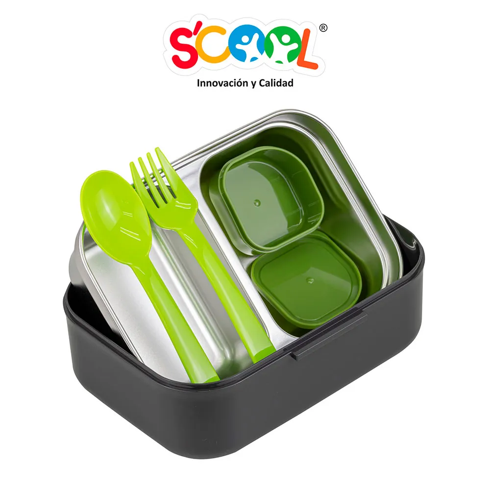 Elementos incluidos: 1 taper scool con 2 divisiones con bandeja de acero, 1 mini salcero, 2 cubiertos de plástico