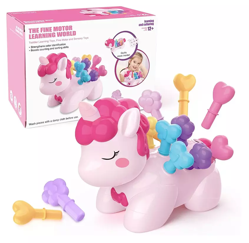 ✔️ Estimula la motricidad fina: los pinchos se insertan en la parte posterior del unicornio, ayudando a mejorar la precisión y coordinación mano-ojo.